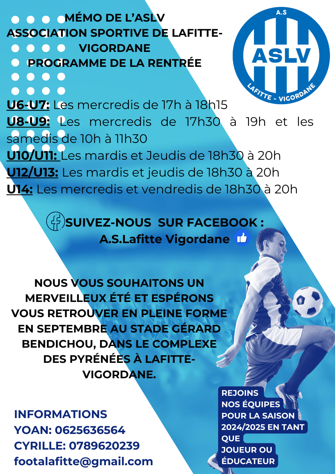 U8-U9/U10-U11: Mercredi & Vendredi de 17h30 à 18h45